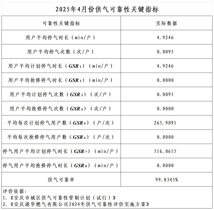 下一篇 : 2025年5月份供氣可靠性關(guān)鍵指標